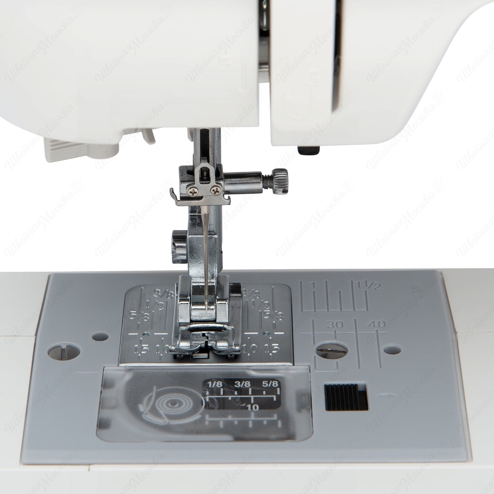 Встроенный нитевдеватель облегчает процесс заправки нити, а регулятор скорости позволяет настроить машину в соответствии со своим стилем шитья. Это обеспечивает комфорт и точность при работе с машиной.