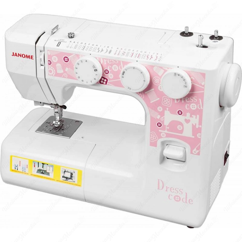 Швейная машина Janome Dresscode имеет многофункциональное оснащение, поддерживает автовыметывание петель, обеспечивает ровное и качественное формирование строчек в прямом, криволинейном положении, обверложку краев текстильных изделий.