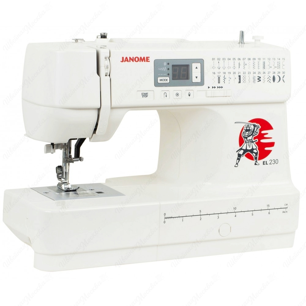 Новая компьютеризированная швейная машина Janome EL230 продолжает серию современных швейных машин EL с горизонтальным челноком и дизайном, вдохновленным японскими традициями. Машина EL230 выгодно отличается соотношением цена-качество: за цену электромеханической машины она предлагает 30 операций, среди которых основные, эластичные, трикотажные и декоративные строчки. В машине EL230 обметка петли выполняется автоматически за один прием. Выбирать операцию и регулировать длину и ширину строчки удобнее за счет дисплея, на котором отображаются соответствующие параметры. Плавная регулировка скорости шитья на корпусе машины позволяет лучше контролировать процесс шитья. С машиной Janome EL230 необязательно использовать ножную педаль - начинать и останавливать шитье можно с помощью клавиши старт-стоп на корпусе машины.
