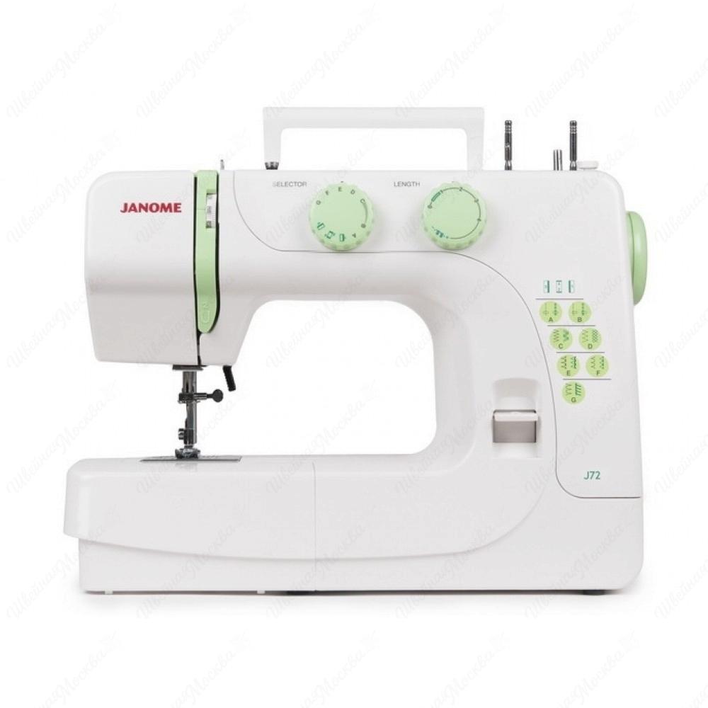 Изготовленная в ярком сочетании сочного салатового и лаконичного белого цвета швейная машина Janome J72 создана специально для любительского и профессионального применения. В комплектацию включена поддержка 13-ти базовых операций. Есть выметывание петель (полуавтомат), прямые и смещенные, оверлочные и подгибочные сточки. При помощи разъемной платформы можно легко превращать станину в рукавную free-arm площадку. Швейная машина Janome J72 развивает скорость до 400 ст/мин, продвигает материал без заминок при подключении нижнего трехполосного транспортера, укомплектована нитеобрезывателем и встроенной подсветкой. Менять длину и ширину стежков до 4-х и 5-ти мм соответственно можно при помощи регуляторов, расположенных на корпусе агрегата.