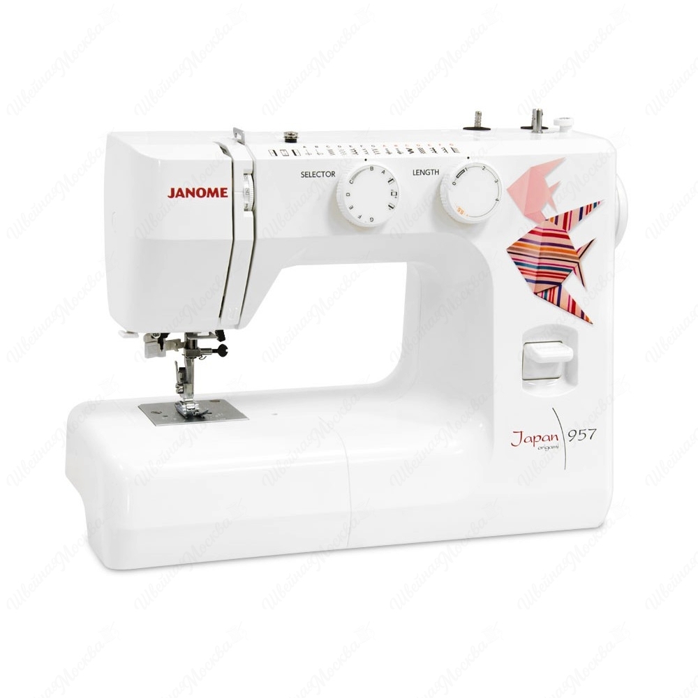 Универсальная швейная машина Janome Japan 957 обладает всеми преимуществами современных электромеханических агрегатов данного типа. В комплектацию включен вертикальный челнок, ручной нитеобрезной элемент, стандартный нитевдеватель. Станина снабжена встроенной подсветкой в виде лампы накаливания, нижним двухполосным транспортером для продвижения материала. Регуляторы параметров строчки выведены на фронтальную панель корпуса. Предельно допустимая развиваемая скорость движения иглы – 600 ст/мин. Швейная машина Janome Japan 957 поддерживает выполнение 15 операций, выметывает петли, производит подшивку низка, создание оверлочных, прямых, смещенных, трикотажных строчек. Лапка подъемная, с диапазоном высоты 14 мм.