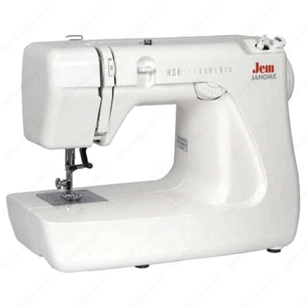 Швейная машина Janome Jem – хороший выбор для домашнего использования. Здесь установлен нижний трехполосный транспортер, есть подъемная лапка, ручной нитеобрезной механизм.