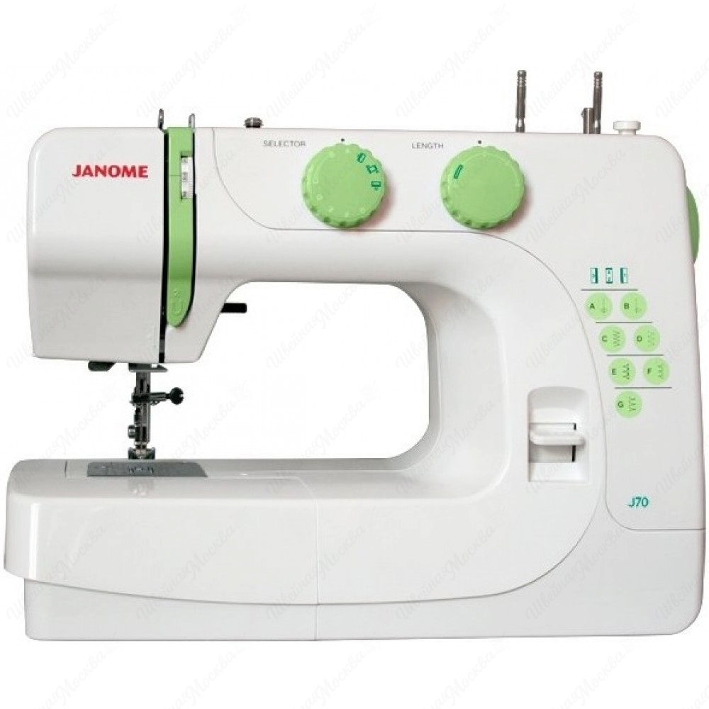 Простая и надёжная швейная машина Janome JS 70 (ES) доступна в бело-зелёном цвете. Она подойдёт начинающим швеям и тем, кто хочет быстро отремонтировать одежду. Janome J70 оборудована встроенным отделением для хранения швейных принадлежностей, которое находится внутри дополнительного столика.