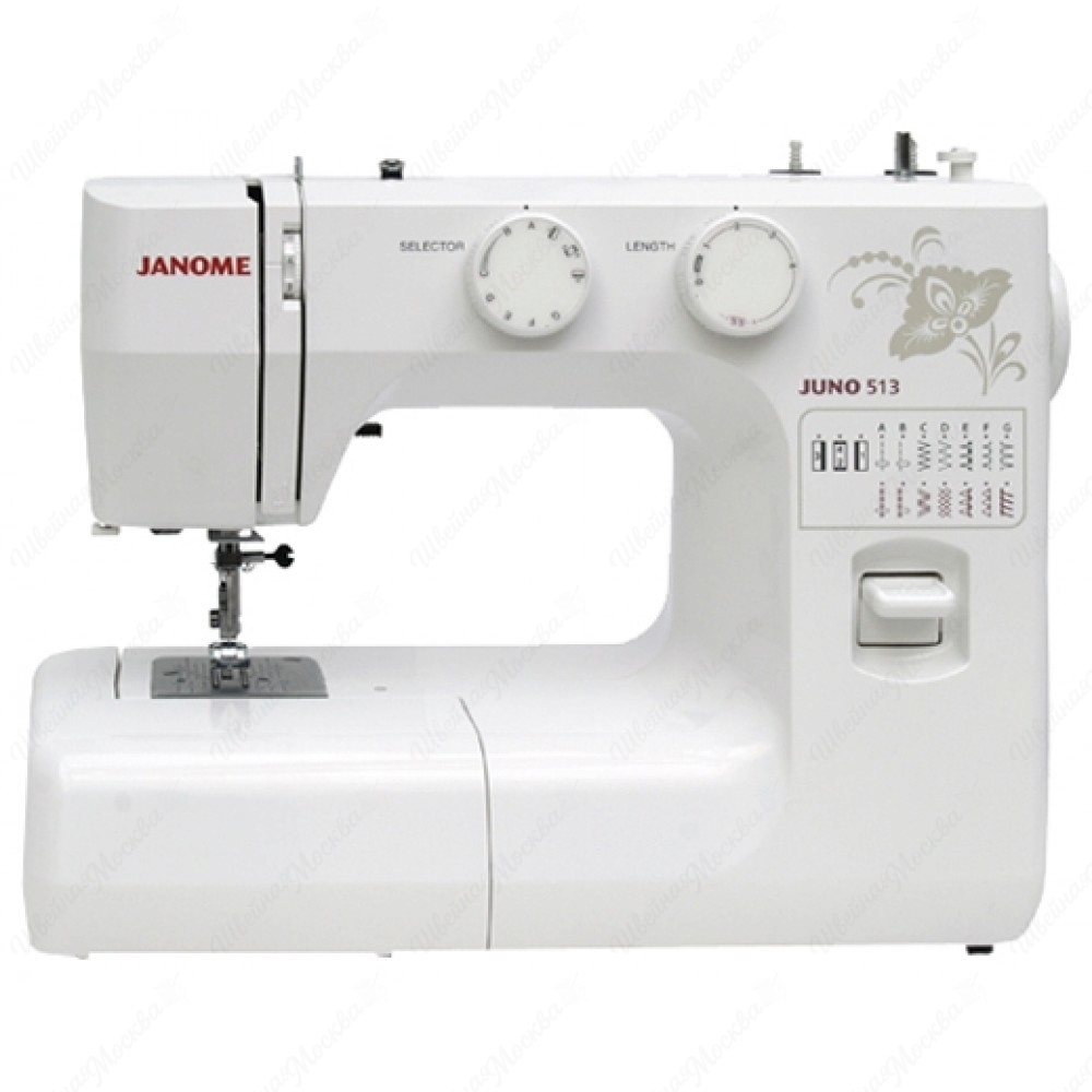 Представленная в лаконичном белом корпусе с free-arm платформой в разъемном основании, швейная машина Janome Juno 513 оснащена вертикальным челноком и электроприводом. Выгодная стоимость модели обеспечивает ей высокую популярность. На фронтальной панели есть вращающиеся рукоятки и переключатели, обеспечивающие легкое управление функциями. Швейная машина Janome Juno 513 поддерживает выполнение 17-ти операций: выметывает петли, позволяет заменять оверлок, соединять ткани по прямой и многое другое. Невысокая скорость шитья облегчает получение начального опыта при моделировании и ремонте одежды. Среди дополнительных опций можно выделить встроенную подсветку станины в виде лампы накаливания, ручной нитеобрезной элемент. Доступна обработка легких и средних по толщине и плотности текстильных изделий.
