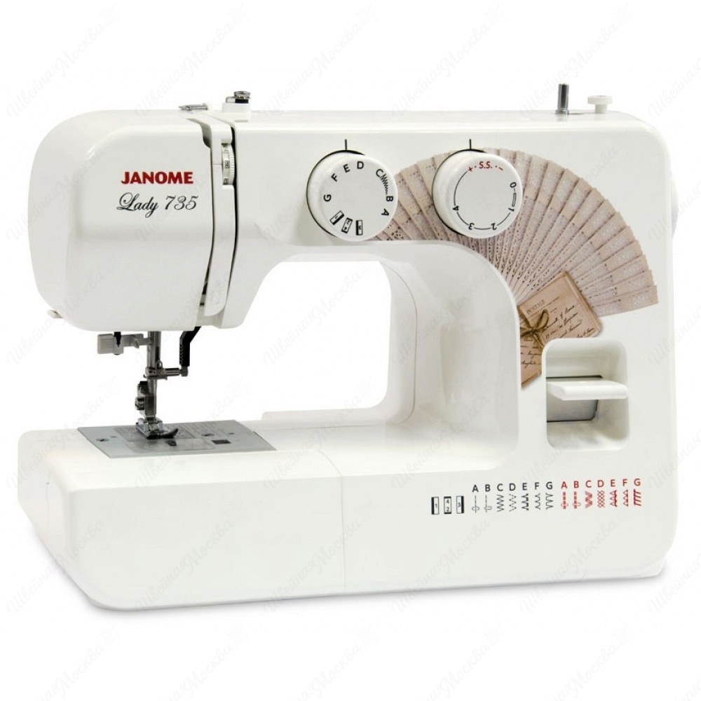 Швейная машина Janome Lady 735 справляется с 15-ю разнообразными операциями. Есть полуавтоматическое выметывание петель. Подсветка в технике реализована в виде встроенной лампы накаливания. Экономичное энергопотребление – всего 40 Вт – не дает значительной нагрузки на сеть. На фронтальной панели корпуса располагаются удобные регуляторы, позволяющие легко настраивать длину, ширину и тип стежков.