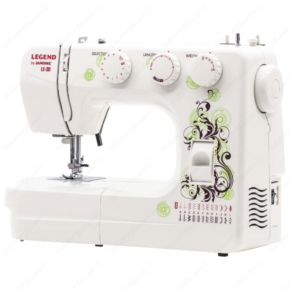 Обладающая ярким дизайном, швейная машина Janome Legend LE-30 не только выглядит современно, но и обладает вполне совершенным техническим оснащением. В комплектацию включен ручной нитеобрезыватель, вертикальный челнок, электропривод. Платформа стандартного размера имеет разъемное основание. Фронтальную панель украшают округлые ручки регуляторов и переключатель функций. Нижний трехполосный транспортер облегчает продвижение материала. Подъемная лапка имеет диапазон хода до 11 мм.