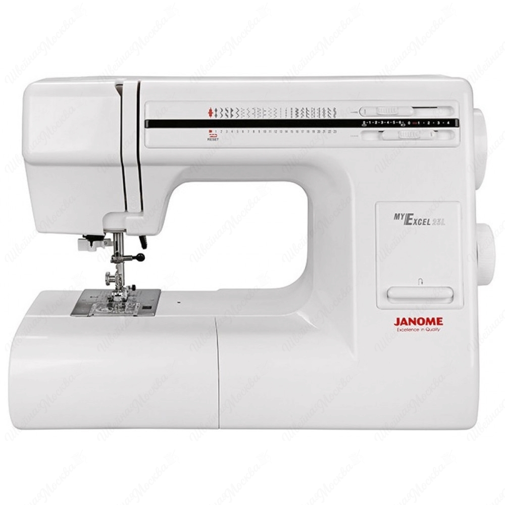 Швейная машина Janome My Excel 23L способна производить автовыметывание петель, выполняет потайную подшивку, обвероложку, формирование прямых и обметочных стежков на скорости до 400 ст/мин. Общее количество запрограммированных операций – 24 шт. Поставляется агрегат с жестким защитным чехлом и прочими необходимыми аксессуарами.