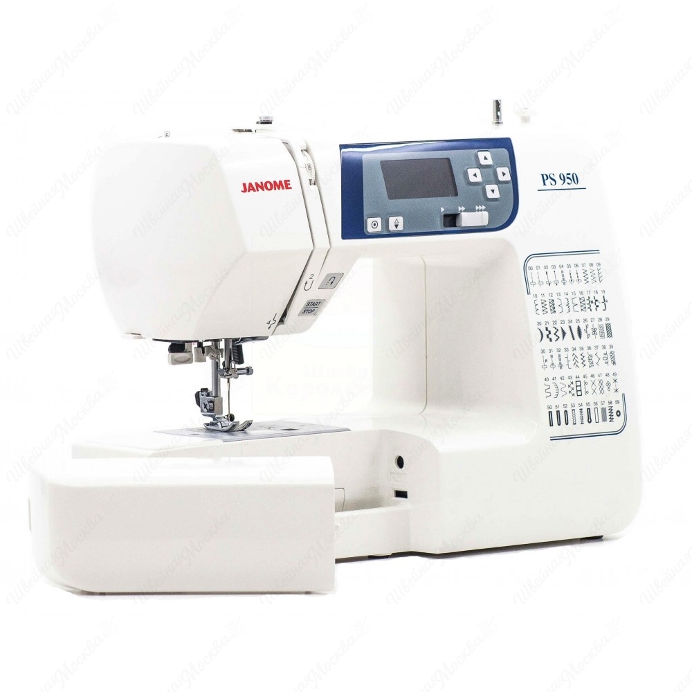 Швейная машина Janome PS 950 — это компьютерная модель с продуманным управлением 30 функциями, разнообразными настройками и стильным дизайном по разумной цене. Оптимальный набор строчек позволяет шить изделия из разных видов тканей. Для прорезной петли предусмотрено три варианта оформления, а её автоматизированное выполнение облегчает процесс. Владельцы отмечают, что настройка параметров на ЖК-экране происходит легко и быстро.