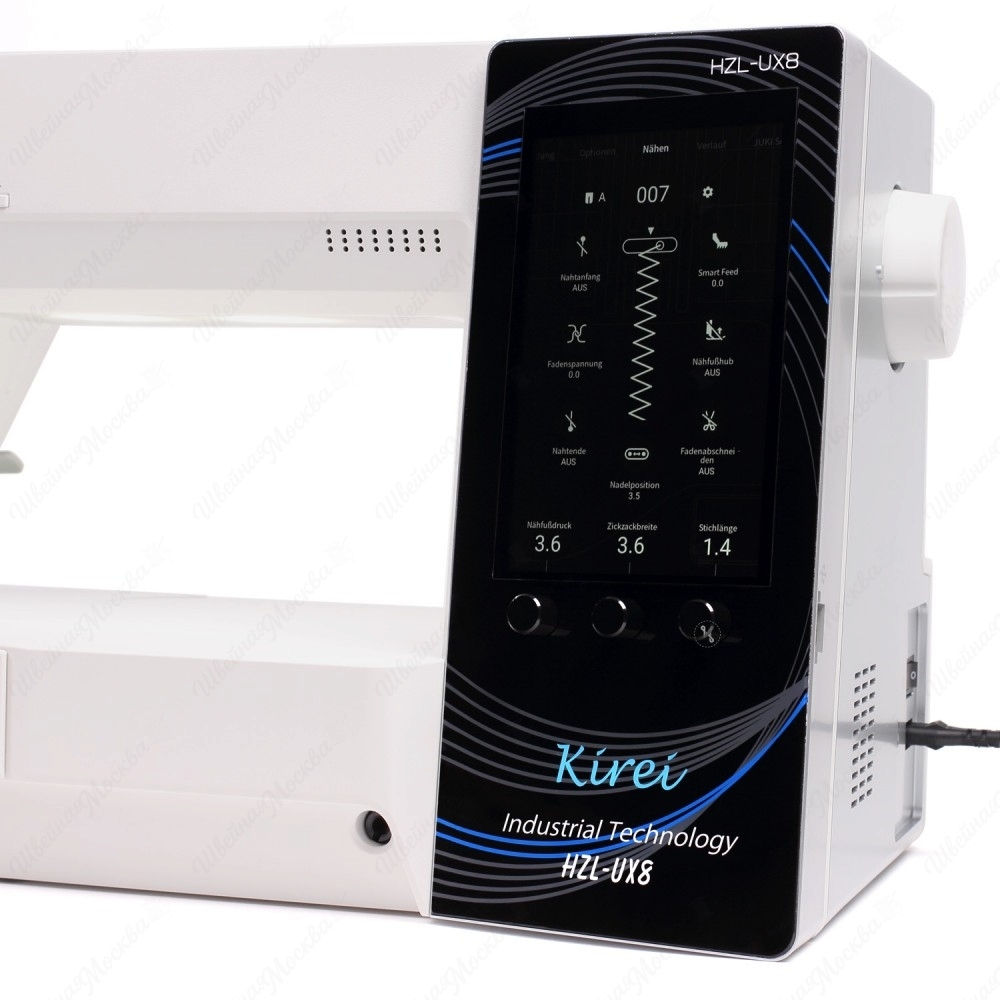 Juki HZL-UX8 Kirei — это профессиональная швейная машина с функциями стёжки и шитья. Она названа в честь японского слова «красавица», что подчёркивает её элегантный и современный дизайн. Одно из ключевых преимуществ этой модели — высокая производительность. Скорость шитья может достигать 1050 стежков в минуту благодаря мощному мотору. Сенсорный экран размером 7 дюймов позволяет управлять машиной, как смартфоном. Вы можете выбирать и редактировать шаблоны, настраивать параметры и смотреть видеоуроки. На экране отображаются только самые необходимые функции и команды, что облегчает управление. При изменении настроек можно видеть изменения в реальном времени благодаря анимации. Десять последних стежков можно сохранить в истории, чтобы вернуться к ним в любое время.