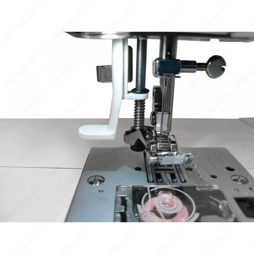 Встроенный нитевдеватель, кнопка реверса/закрепки, позиционирование иглы, клавиша «Старт/Стоп», регулировка скорости на панели машины, функция шитья двойной иглой и алфавитные строчки включены в спецификацию машины. Leader Lazurite легко справляется с тканью.