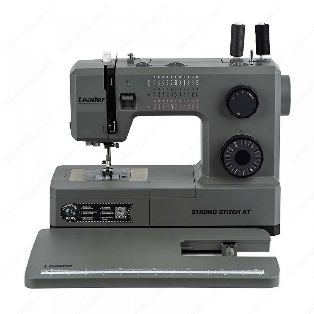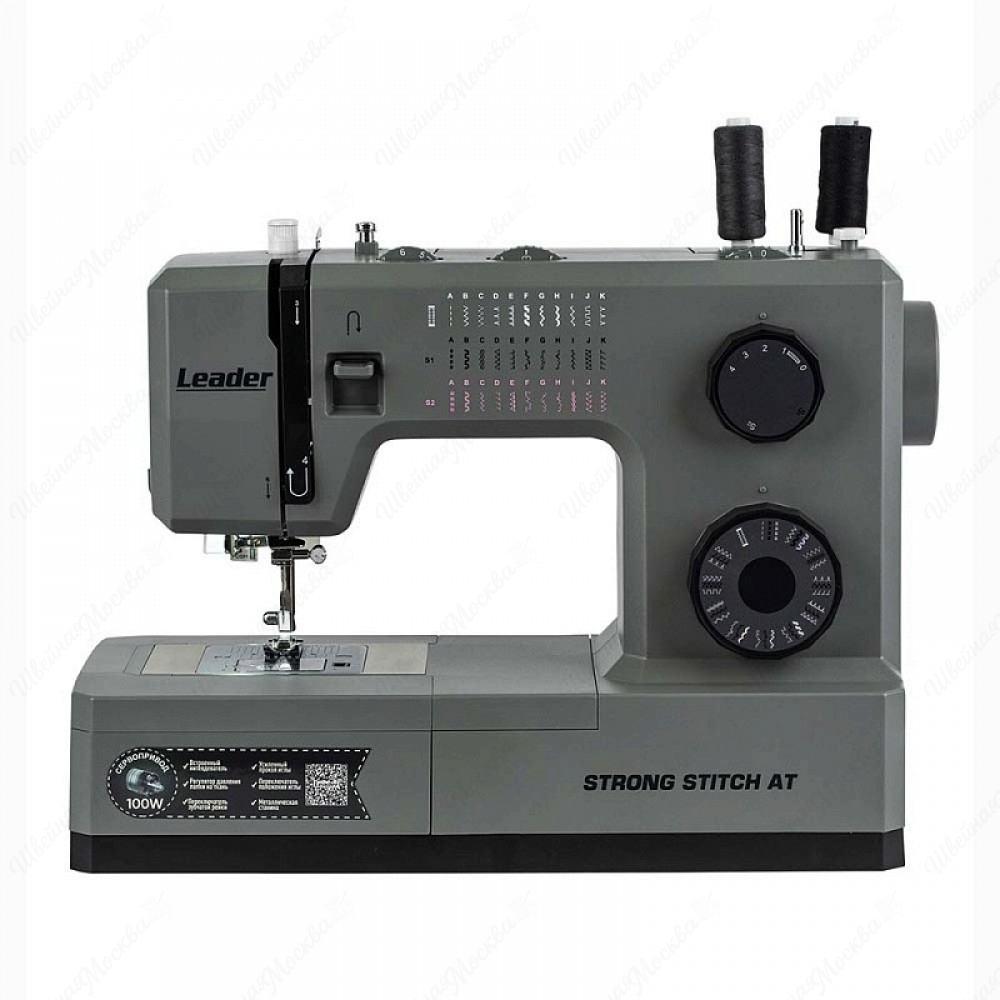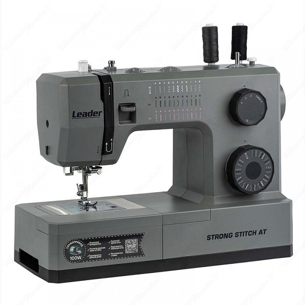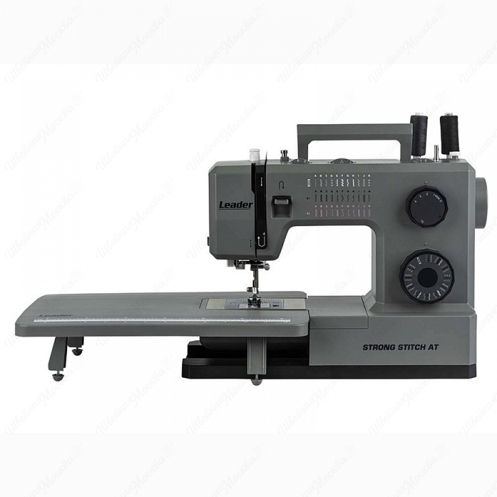 Leader STRONG STITCH AT — профессиональная электромеханическая швейная машина. Оснащена горизонтальным челноком с удобной заправкой и встроенным нитевдевателем. Серводвигатель мощностью 100 Вт обеспечивает скорость шитья до 850 стежков в минуту. Модель оборудована регулятором давления лапки, регулятором баланса петли и удобным регулятором положения иглы. 7-сегментная зубчатая рейка эффективно продвигает материал. В комплект входит большой расширительный столик с линейной разметкой и отсеком для аксессуаров, лапка для пришивания пуговиц и специальная пластина для сложных мест. Свободный рукав позволяет удобно шить по кругу, а увеличенный рабочий стол идеален для работы с верхней одеждой и объёмными проектами.