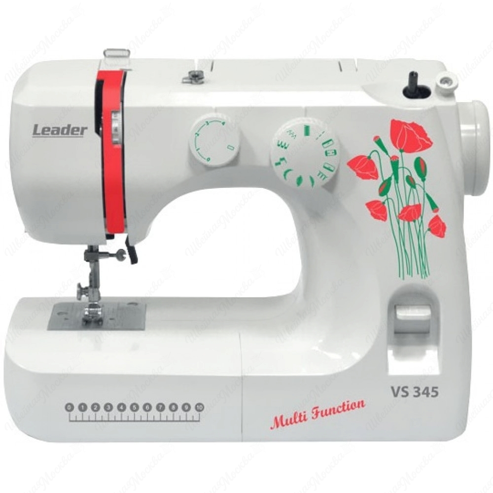 Leader VS 345 весит 5 кг, имеет максимальную высоту подъёма лапки 11 см, максимальную длину стежка 4 мм и максимальную скорость шитья 400 стежков в минуту. В ней также есть нижний транспортёр с тремя зубьями, вертикальный качающийся челнок и съёмная рукавная платформа.
