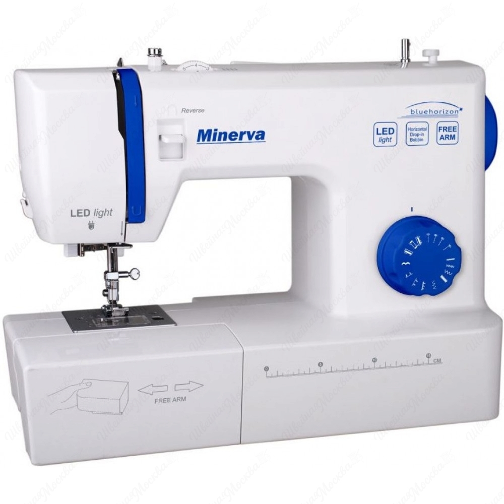 Швейная машина MINERVA BLUEHORIZON оснащена вертикальным челноком, прозрачная шпулька позволяет контролировать количество нити, обеспечивая удобство в работе.