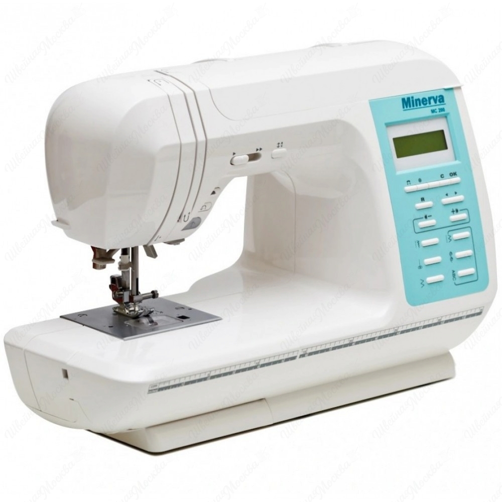 Швейная машина Minerva MC200 — это компьютерная модель с горизонтальным ротационным челноком. Она предлагает 210 функций, включая выполнение 9 типов петель. Среди возможностей машины — подсветка, регулировка скорости шитья, точечная фиксация, шитьё двойной иглой и шитьё в обратном направлении. Машина оснащена съёмной рукавной платформой, устройством обрезки нити, функцией штопки и возможностью работы с материалами. В комплект также входят нитевдеватель, набор игл, лапки для разных видов работ и инструменты для обслуживания машины.