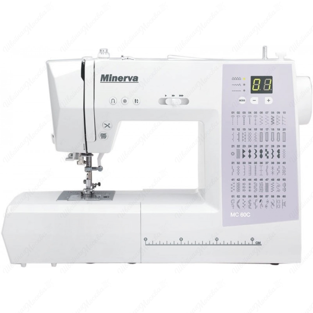 Minerva MC60C — это электромеханическая швейная машина с электронным управлением и возможностью плавного изменения скорости шитья. Она оснащена кнопкой реверса, регулятором давления лапки на ткань и функцией автоматического создания петель. У этой модели 60 различных операций, включая обмётную, потайную, эластичную и эластичную потайную строчки. Максимальная длина стежка составляет 4,5 мм, а максимальная ширина — 6,5 мм. В комплекте идут лапки для вшивания молнии и пришивания пуговиц, а также мягкий чехол для хранения и переноски.