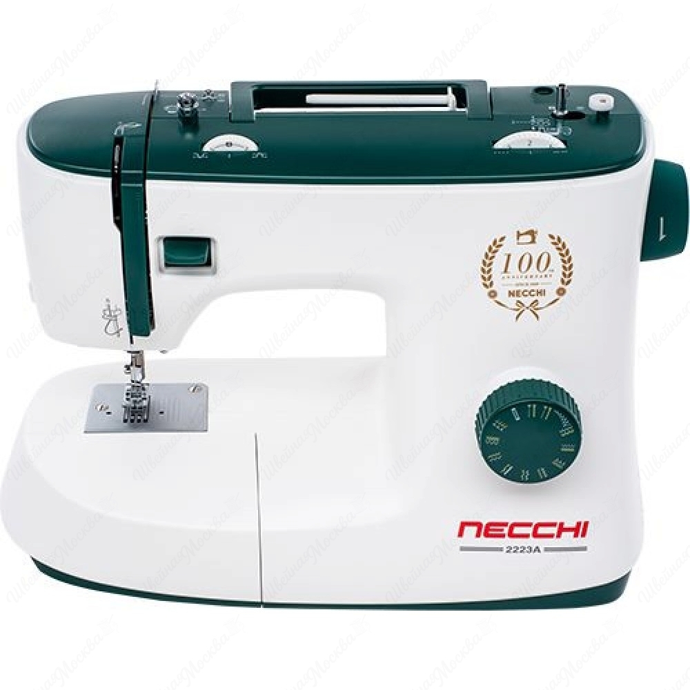 Швейная машина Necchi 2223A — это электромеханическая модель с вертикальным челноком и возможностью шитья двойной иглой. Она оснащена 23 видами швейных операций, включая прямые, оверлочные, потайные и декоративные строчки. Максимальная длина стежка составляет 4 мм, а максимальная ширина — 5 мм. Машина имеет светодиодное освещение рабочей зоны, съёмную рукавную платформу и регулировку давления лапки на ткань. В комплект входят различные аксессуары, такие как универсальная лапка, лапки для молнии и пуговиц, а также набор игл и шпулек.