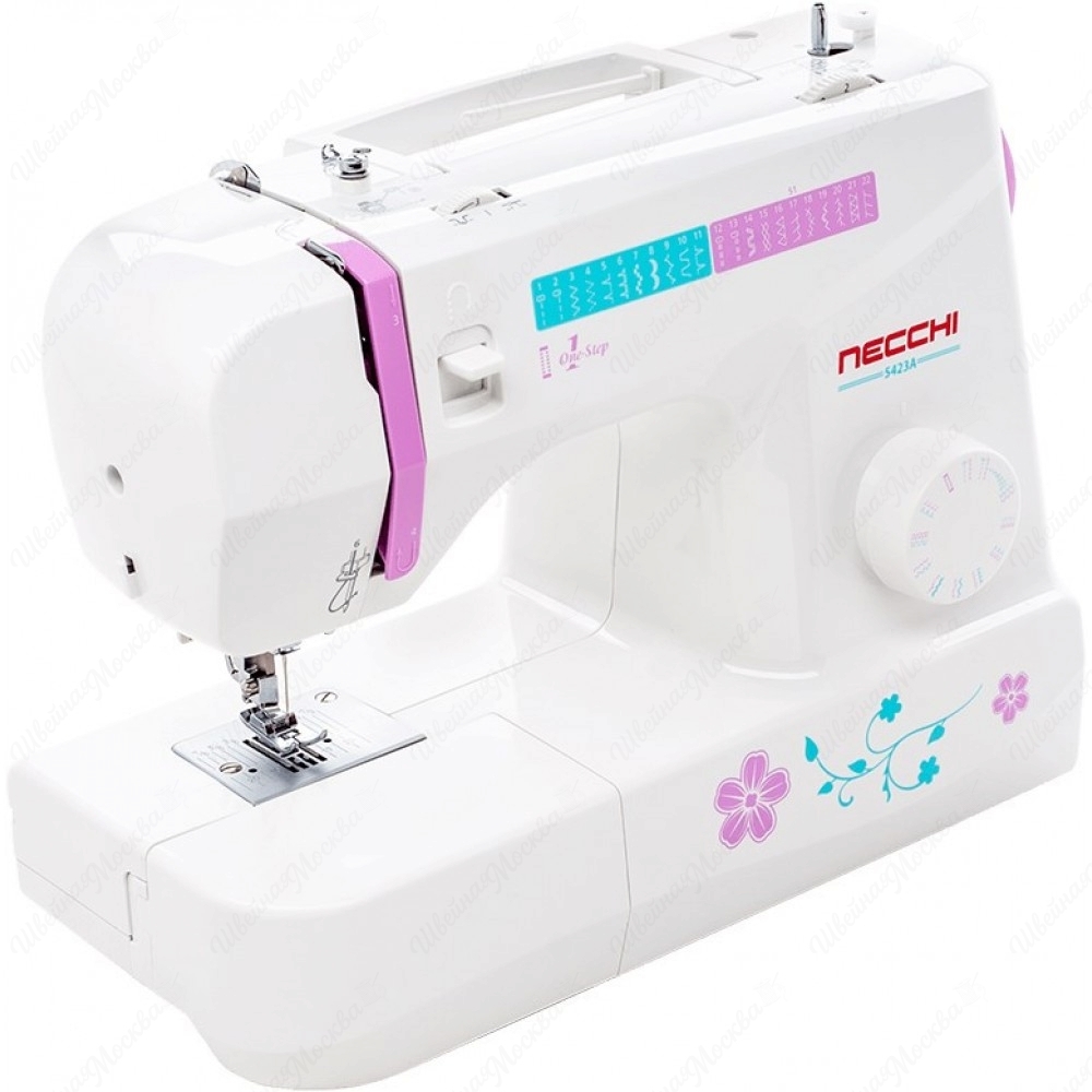 Necchi 5423A самая младшая, и соответственно, самая недорогая из моделей, в которую производитель поставил функцию полностью автоматического изготовления петель для пуговиц. Necchi 5423A сама вышьет петлю под нужный размер за один прием. Нужно только вставить пуговицу, в специальную лапку для выметывания петли. А в чем сбалансированность – спросите Вы? А в том, что помимо автоматической петли, к начальным комплектациям были добавлены еще и полноценные 22 швейные операции. Да еще и возможность дополнительно увеличить их число, используя функцию регулировки длины стежка, которая тоже уже есть, и наряду с изготовлением петель, сделает возможным заняться шитьем уже профессионально.