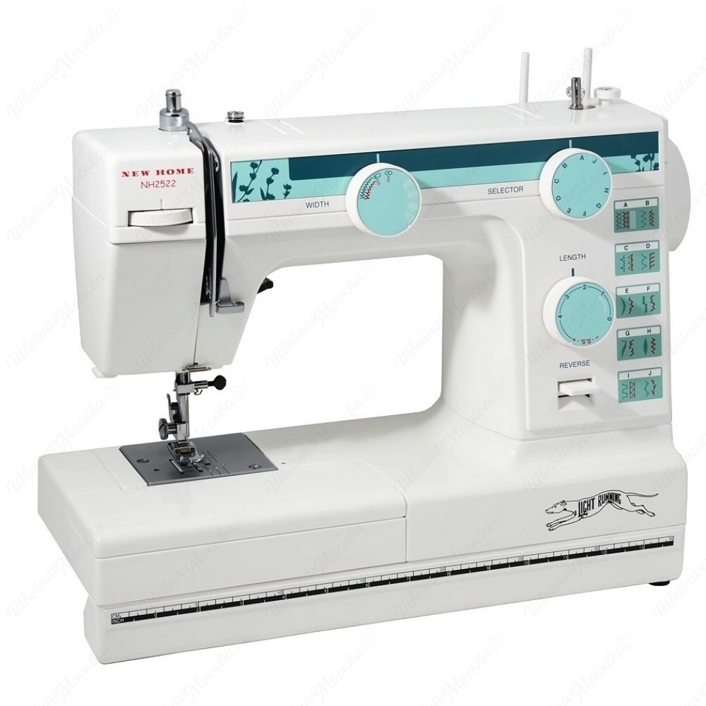 Швейная машина New Home NH2522 – удобный вариант для тех, кто любит шить дома. Небольшая по габаритам и весу модель способна выполнять 23 вида строчки, в том числе прямую, укрепленную, зигзагообразную, оверлочную, пунктиром, потайную, трикотажную и т.п. За счет электромеханического типа управления оборудованием очень легко и удобно пользоваться. Швейная машина New Home NH2522 снабжена функцией автоматического выметывания петель, кнопкой реверса, отделением для хранения мелочей и галогеновым светильником. В минуту аппарат способен воспроизводить 860 строчек. В комплекте с оборудованием идут защитный чехол, лапки разных типов (стандартная, для петель, для молний, для атласных тканей, для вышивания и т.п.), запасная педаль, отвертки, шпульки и другие аксессуары.