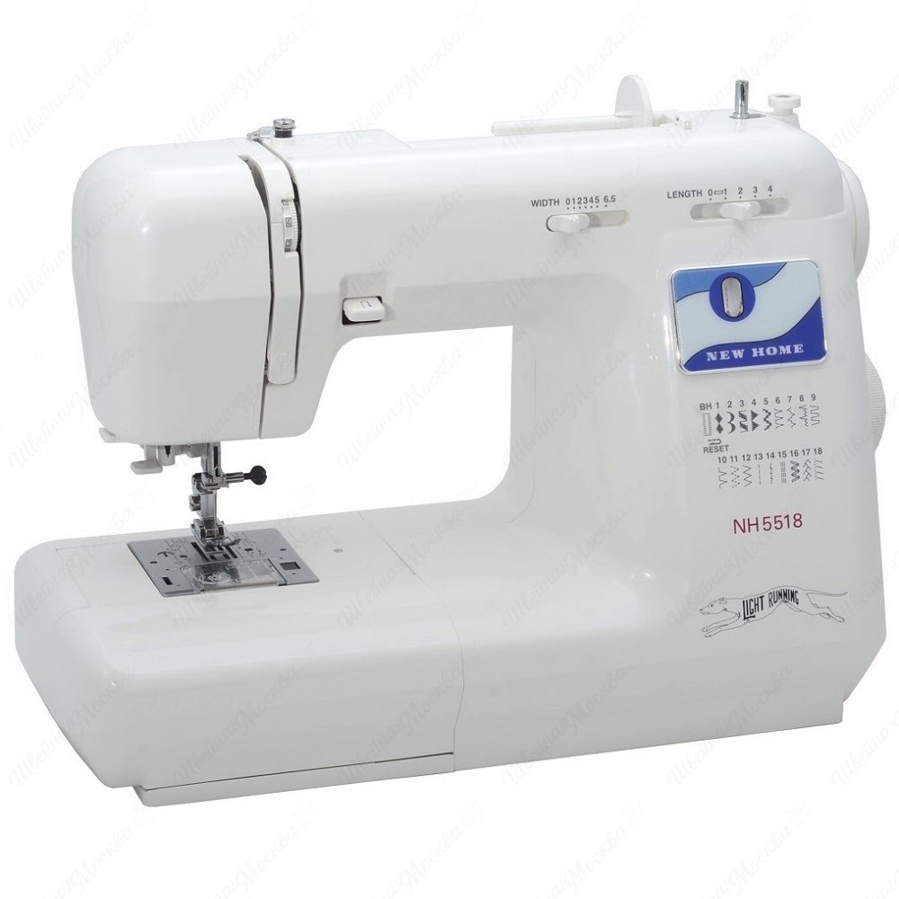 Швейная машина New Home NH5518 как нельзя лучше подходит для обычного шитья и для творчества. Модель электромеханического типа снабжена простым и понятным управлением. С ее помощью можно обрабатывать вискозу, лен, бязь, джинсу, костюмные и пальтовые ткани и даже обивочный текстиль. Всего в арсенале оборудования 18 различных операций, в том числе ромбовидная строчка, фестоновая, треугольная, краеобметочный шов, мостовой стежок, двухступенчатый зигзаг и др. Швейная машина New Home NH5518 снабжена встроенной галогеновой лампой, съемной рукавной платформой, нитевдевателем и еще рядом полезных дополнений. Аппарат оснащен горизонтальным челноком, который удобно заправлять и регулировать.