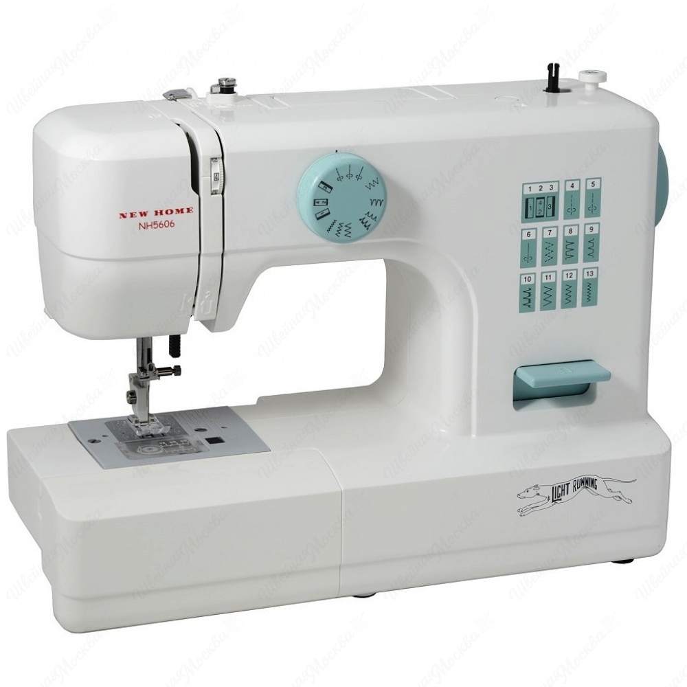 Электромеханическая швейная машина New Home NH5606 отличается функциональностью и удобством эксплуатации. Горизонтально расположенный челнок позволяет легко заправлять шпульку и шить, предварительно не поднимая нижнюю нить вверх. Аппарат умеет делать 11 видов строчек, а регулируемая высота подъема лапки дает возможность работать с толстыми тканями. Устройство имеет режим полуавтоматического выметывания бельевых петель. Комфортное шитье обеспечивают достаточно длинная рабочая платформа и встроенная галогеновая лампа. Для японской швейной машины New Home NH5606 инструкция создана на русском языке, что максимально упрощает процесс знакомства с устройством и обучения. Приятным бонусом являются входящие в комплект поставки наборы лапок и игл, держатель катушки, вспарыватель и т.п.