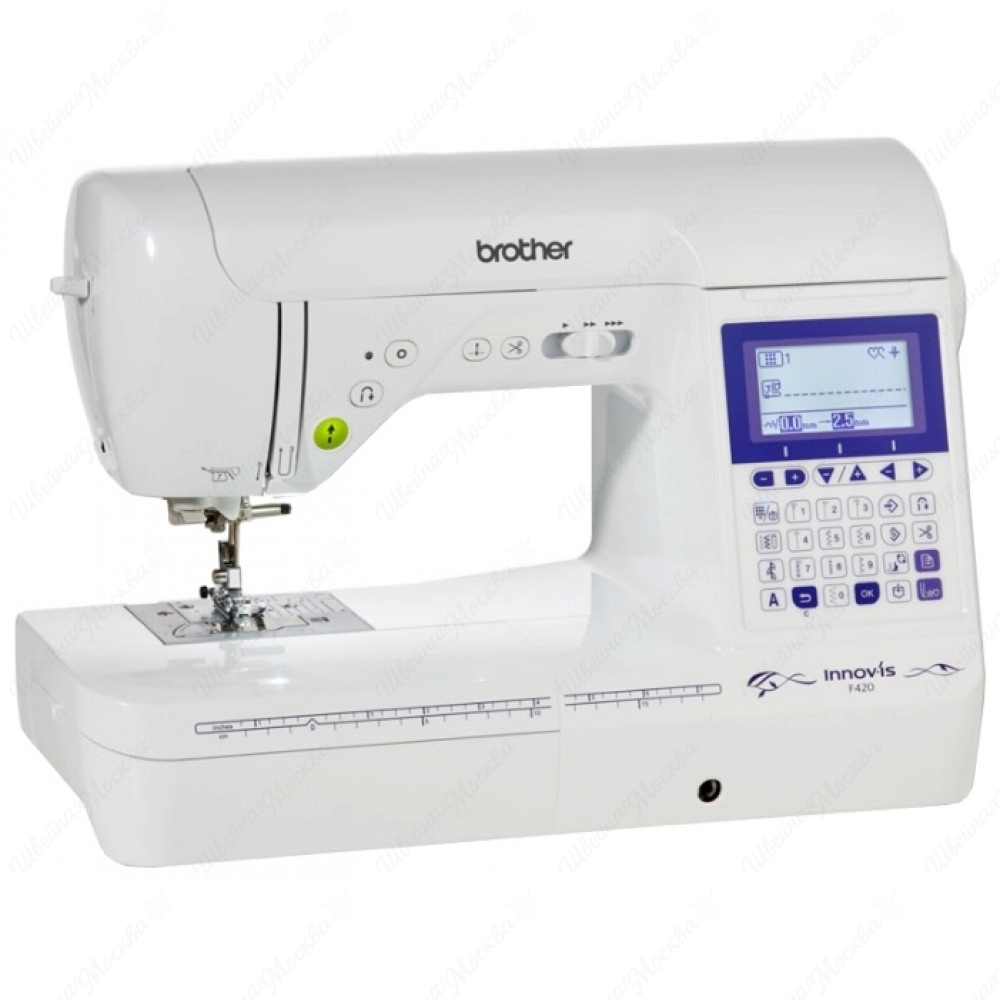 Brother INNOV-IS F420 – это компьютеризированная швейная машина, которая подходит как для профессиональных портных, так и для любительниц такого вида рукоделия, как квилтинг. Она достаточно надежна, легка в управлении и обладает широким набором функций. Brother INNOV-IS F420 способна выполнять множество видов строк и выметывать петли различными способами. Кроме того, в нее встроено несколько шрифтов с заглавными буквами. На оборотной стороне крышки имеется таблица, облегчающая выбор нужной строчки. Вся подробная информация о процессе выполнения работы отображается на встроенном жидкокристаллическом дисплее, размер которого составляет 3,5 дюймов. Наличие функции облегченной заправки нити, значительно ускоряет процесс наматывания шпули, а система REVERS позволяет создавать автоматические закрепки. Дополнительный комфорт при работе обеспечивается за счет горизонтального челночного устройства и светодиодной подсветки.