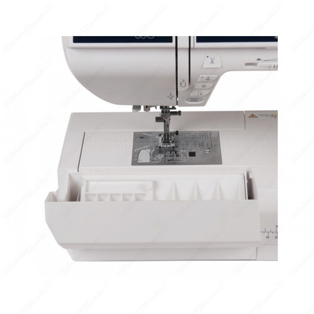 Оснащенная программным управлением, ярким сенсорным дисплеем многофункциональная швейно-вышивальная машина Elna Expressive 860 относится к категории профессиональных агрегатов. Среди 200 доступных пользователю операций здесь можно выбрать автовыметывание 6 видов петель, формирование строчки по прямой. Предельно развиваемая скорость движения иглы в двух режимах 800/1000 строчек/мин (вышивка-шитье). Ширина и длина стежков регулируется до 5 и 9 мм соответственно. На боковой панели расположен USB вход для подключения внешних накопительных устройств. Швейно-вышивальная машина Elna Expressive 860 имеет увеличенный размер платформы, free-arm вставку и разлинованную разметку на поверхности корпуса. В комплектацию включен регулятор давления лапки, автоматическое нитеобрезное устройство, нитевдеватель, пяльца 17х20 см и другие аксессуары.