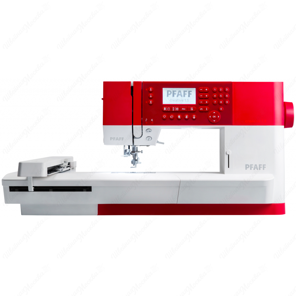Данная модель имеет увеличенное поле шитья и 4-сегментный нижний транспортер, который облегчает обработку деликатных тканей. Функционал устройства состоит из 150 операций, отвечающих за создание разнообразных строк (оверлочных, аппликационных, штопальных, квилтинговых, потайных и прочих). Помимо этого, присутствует возможность выметывания прямых петель в автоматическом режиме. Управлением всеми опциями осуществляется через кнопки, расположенные на корпусе, а встроенный дисплей позволяет контролировать ход выполнения работ. Помимо этого, Pfaff Creative 1.5 имеет дополнительные преимущества, к которым относятся: типовой нитевдеватель, светодиодная подсветка, регулятор давления лапки и ручное устройство обрезки нити.