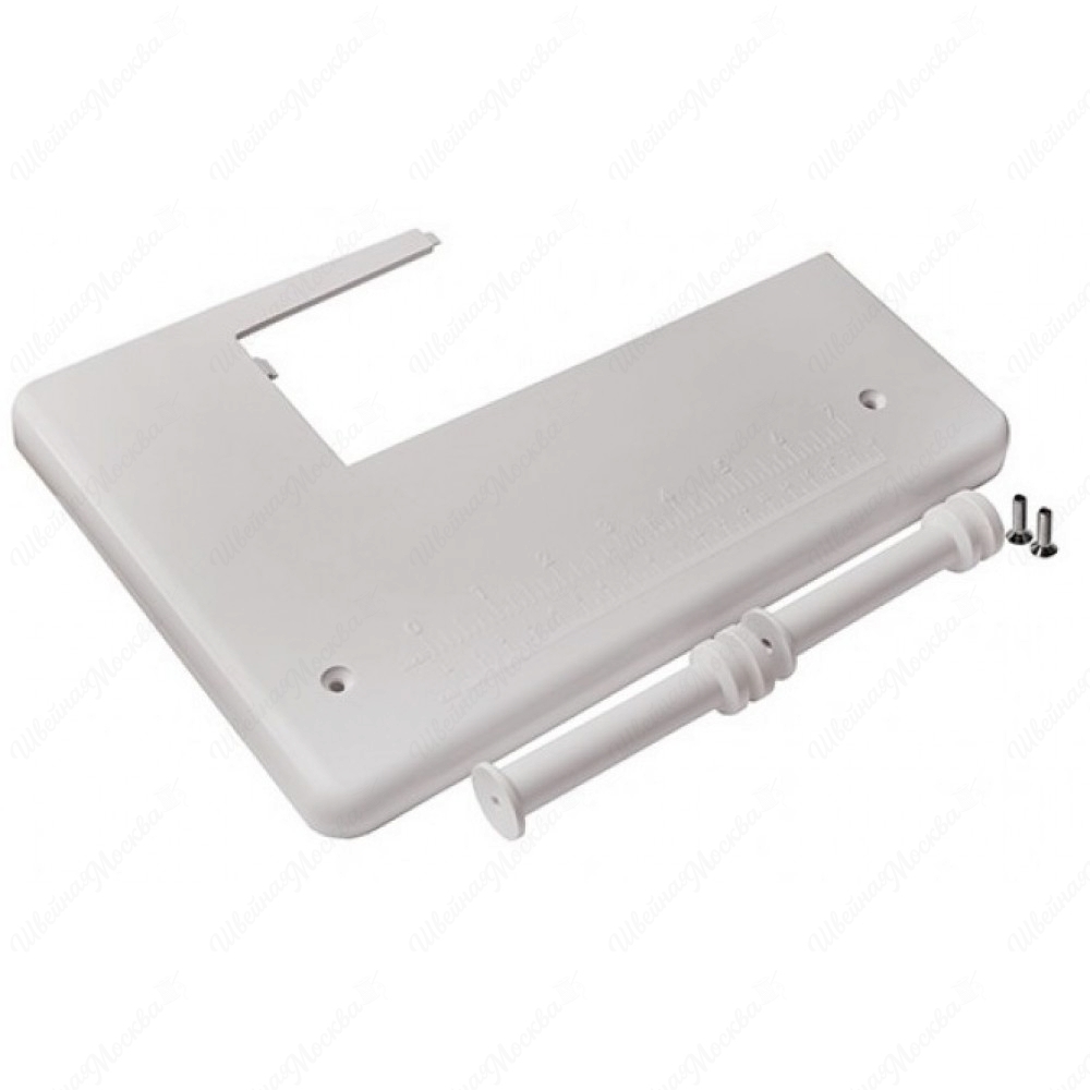 Компактной поверхности основания классических распошивальных машин часто оказывается недостаточно для проведения действий с крупногабаритными текстильными изделиями. Но достаточно купить столик приставной Janome Cover Pro, и любая мастерица сможет обеспечить себе максимальный комфорт при работе с большими отрезами ткани. Увеличивая рабочую зону, устройство надежно фиксируется на корпусе девайса, закрепляется и не скользит.